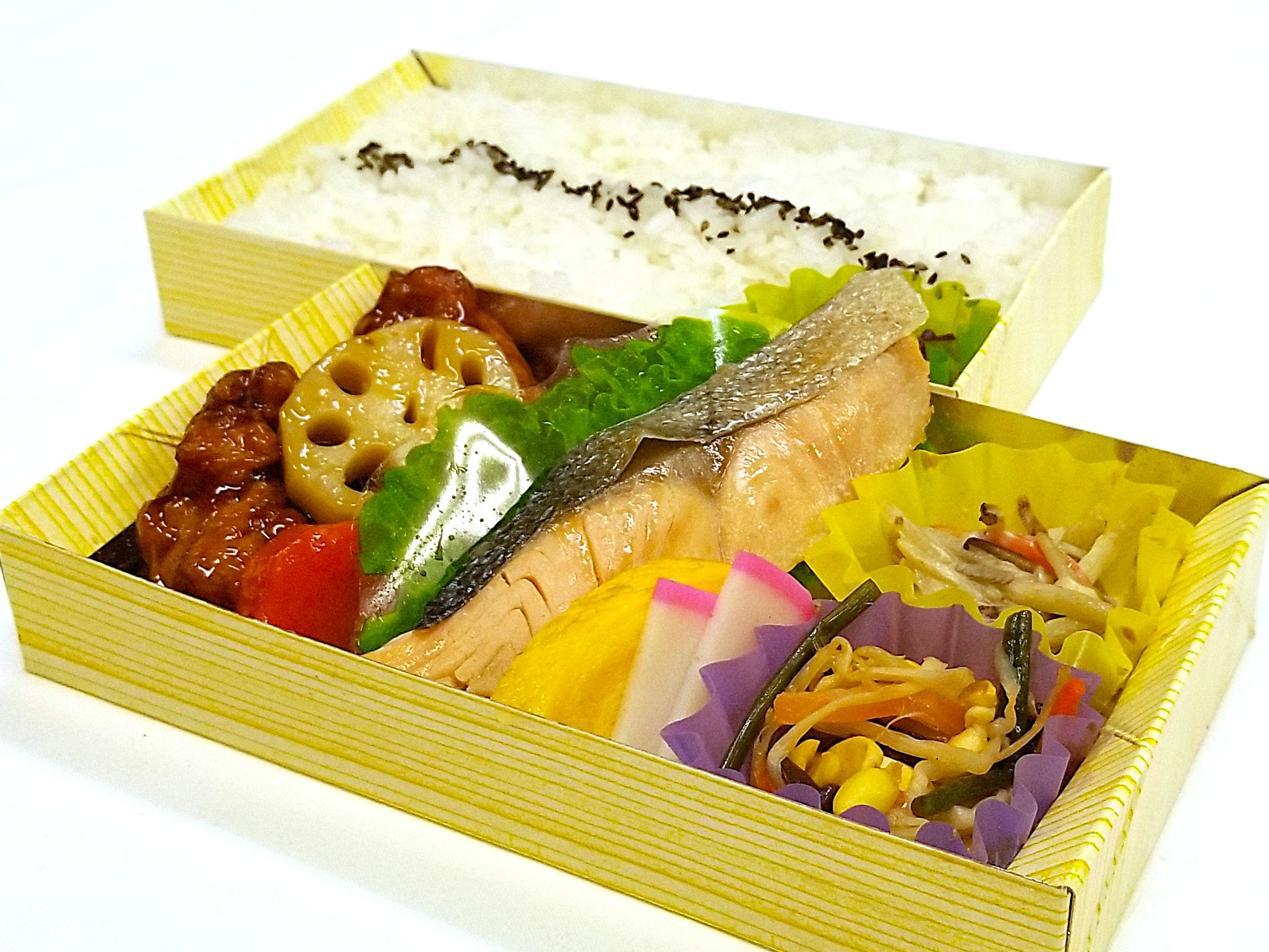 鶏と野菜の黒酢餡かけ×鮭の塩焼き弁当